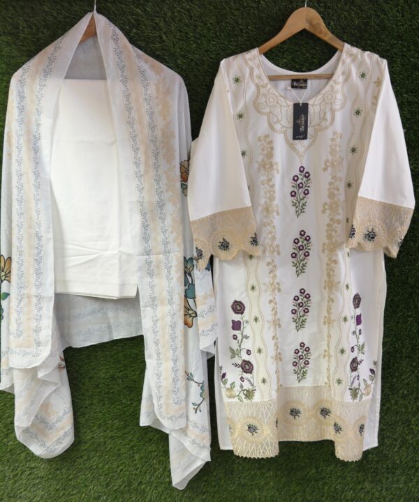 Paired with a Masleen digital print dupatta, this outfit stands out with vibrant colors and intricate patterns that reflect modern artistry rooted in tradition. The lightweight masleen fabric ensures a breezy, effortless look while adding a splash of statement style.